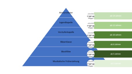 Nachfolgend eine schematische Darstellung über die verschiedenen Phasen der musikalischen Ausbildung im Musikverein Hart.